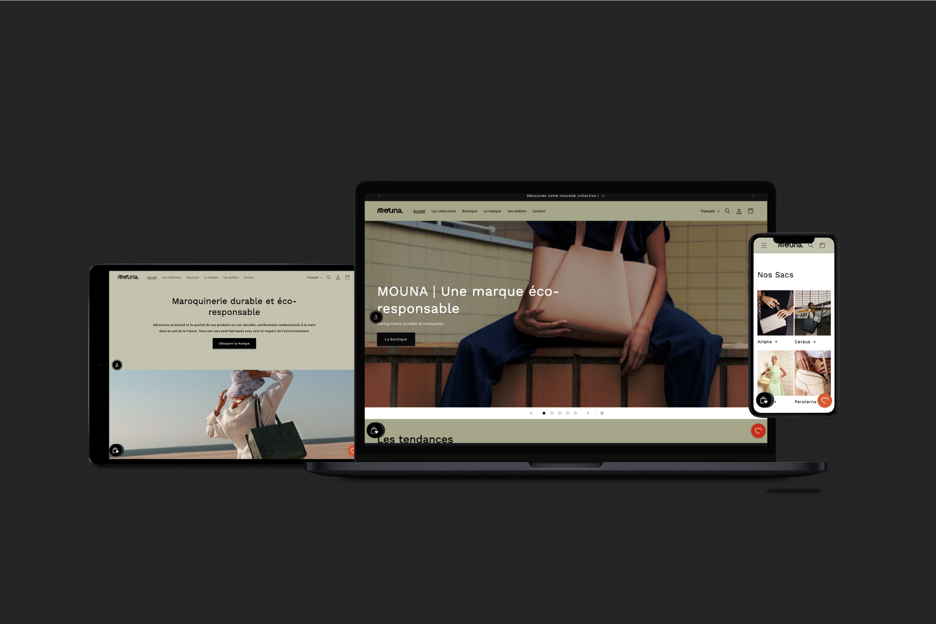 Mouna est une boutique de maroquinerie durable situé à Sanary-sur-Mer. Spécialisée dans la vente de sac à main et d’accessoires de maroquinerie végétale, issus de matières innovantes et éco-responsables. La boutique propose également des services de personnalisation et des ateliers créatifs.